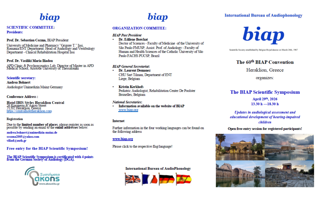 Η Διεθνής Επιστημονική Εταιρεία Ακουοφωνολογίας και το Μεταπτυχιακό Διαταραχή Ακουστικής Επεξεργασίας της Ιατρικής ΑΠΘ συνδιοργανώνουν ημερίδα στο Ηράκλειο στις 29 Απριλίου 2026 από 13:30 έως 18:30 στο Ibis Style στο Ηράκλειο. Τα θέματα θα αναπτυχθούν στα Αγγλικά και αφορούν εκπαιδευτικούς, ειδικούς παιδαγωγούς, λογοθεραπευτές, ψυχολόγους, εργοθεραπευτές, μουσικούς, ΩΡΛ καθώς και ιατρούς άλλων ειδικοτήτων. Η άμεση σύνδεση της ακοής με την προσοχή και την μνήμη εξηγεί το γιατί όταν υπάρχουν διαταραχές ακοής έχουμε αρνητικές επιπτώσεις στην μάθηση, την επικοινωνία, την κοινωνικοποίηση και την ψυχική υγεία. Οι συμμετέχοντες θα παρακολουθήσουν ότι πιο σύγχρονο στον τομέα αυτό που επηρεάζει την δυνατότητα πλήρους ανάπτυξης του νοητικού δυναμικού στην προσχολική και πρώτη σχολική ηλικία. Η πρώιμη παρέμβαση είναι εξαιρετικά σημαντική. Η αποκατάσταση αφορά και την νευροπλαστικότητα του εγκεφάλου με την χρήση ειδικών εξατομικευμένων ασκήσεων όπως επίσης και την μουσική εκπαίδευση. Η ημερίδα είναι υπό την αιγίδα του Τμήματος Ιατρικής του Αριστοτελείου Πανεπιστημίου Θεσσαλονίκης και έχει λάβει μόρια συνεχιζόμενης εκπαίδευσης από την Γερμανική Ακουολογική Εταιρεία. Οι ενδιαφερόμενοι καλούνται να αποστείλουν email στο scozma2005@yahoo.com και στο viliad@auth.gr για εξασφάλιση θέσης.