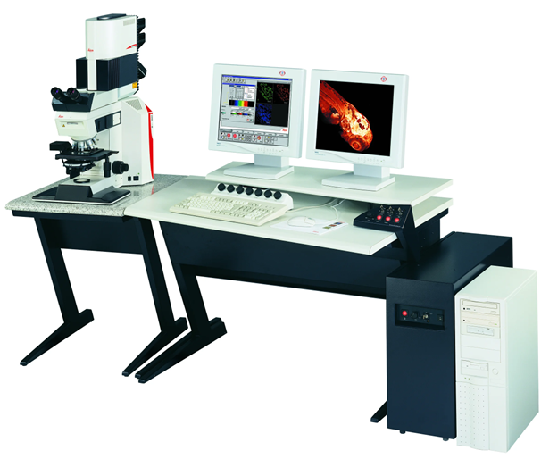 Το Leica SP2 είναι ένα όρθιο laser scanning confocal μικροσκόπιο σχεδιασμένο για φθορίζουσα απεικόνιση κυττάρων, ιστών και ιστολογικών παρασκευασμάτων με υψηλή χωρική ανάλυση. Το σύστημα επιτρέπει την καταγραφή οπτικών τομών και τη δημιουργία τρισδιάστατων εικόνων μέσω confocal scanning, καθιστώντας το κατάλληλο για τη μελέτη υποκυτταρικών δομών και μοριακών αλληλεπιδράσεων.