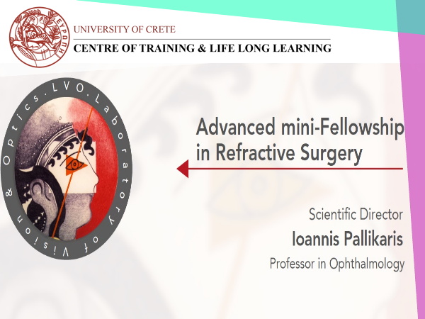 The Centre for Training and Lifelong Learning (K.E.DI.VI.M) of the University of Crete organises course with title: Advanced mini-Fellowship in Refractive Surgery. (Module1/Theoretical)
