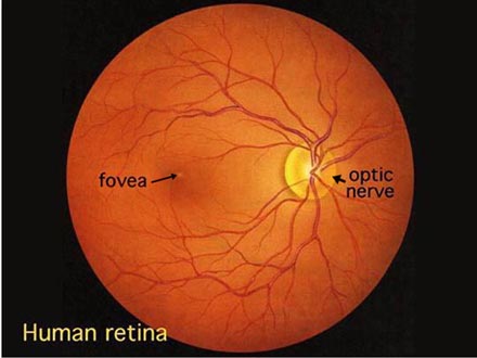 Εικόνα φυσιολογικού βυθού οφθαλμού (οπτικό νεύρο και κεντρικό βοθρίο ωχράς)